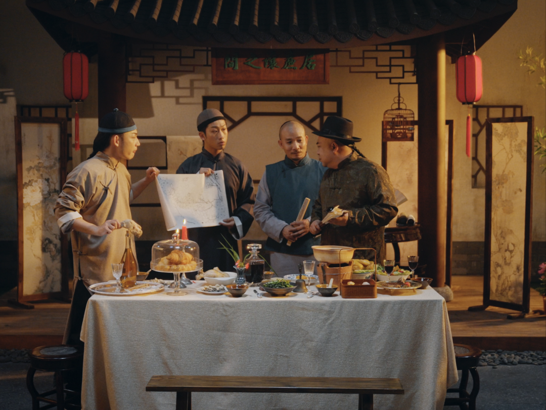 而在居廉画作的选择方面,除了大家熟悉的花鸟鱼虫,两位主创也特地选择了多张居廉画食物的画。杨曼曼表示,美食入画在国画里并不多,但居廉的画里有蔬果、腊肠、腊鸭等岭南美食。“广州人本身就有很多‘吃货’,我们也想与之有个链接,让观众通过十香园充满烟火气的岭南生活场景,领略晚清奇趣横生的广东人文生活,深入理解岭南画派的艺术精神。”