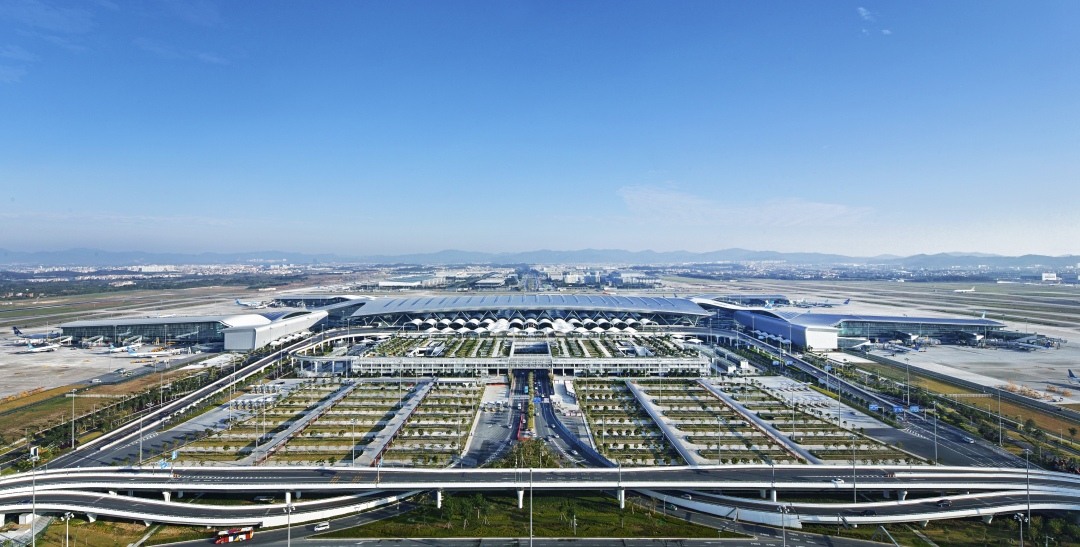 白云机场是全国三大国际枢纽机场之一,其二号航站楼充分利用自然条件,优化景观设计,通过减少空调排热、采用透水地面等技术措施改善区域热微环境。同时,项目综合运用活动外遮阳系统、高透光节能玻璃和太阳能光伏发电系统等技术措施,降低建筑能耗,提高空间舒适性,先后获得绿色建筑设计和运行三星级标识。