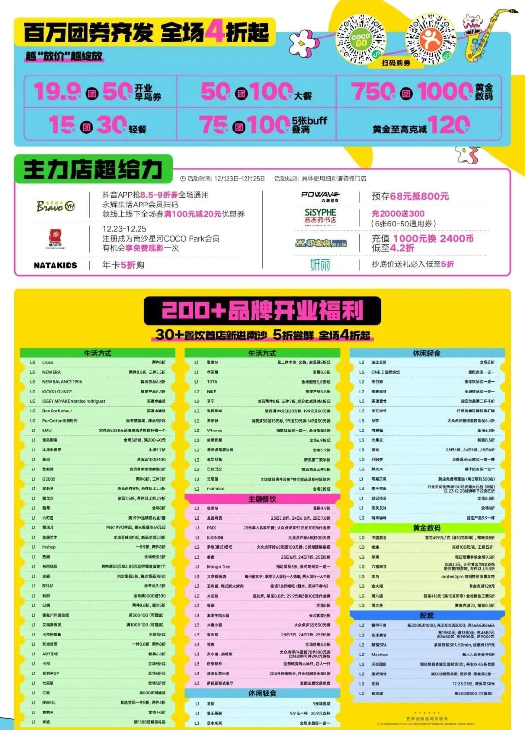 12月23日—25日开业庆典期间,广州南沙星河COCO Park联动商户开展0元霸王餐、全场4折起活动、1000+茶饮免费喝、15元团30元轻餐、50元团100元半价享美食、黄金最高克减120元叠加750元团1000元活动,福利直接拉满!