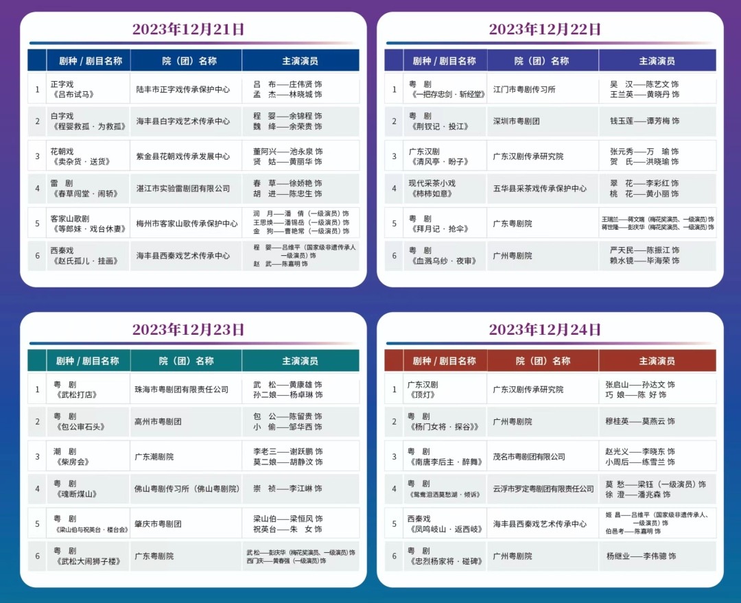 为弘扬中华优秀传统文化,在文化强省建设进程中积极推进广东戏曲艺术的保护传承发展,由广东省文化和旅游厅指导,广东省艺术研究所、东莞市文化馆主办的“2023粤戏越精彩·广东省地方戏曲传统折子戏展演”,于12月21日~24日在东莞市文化馆星剧场举行。