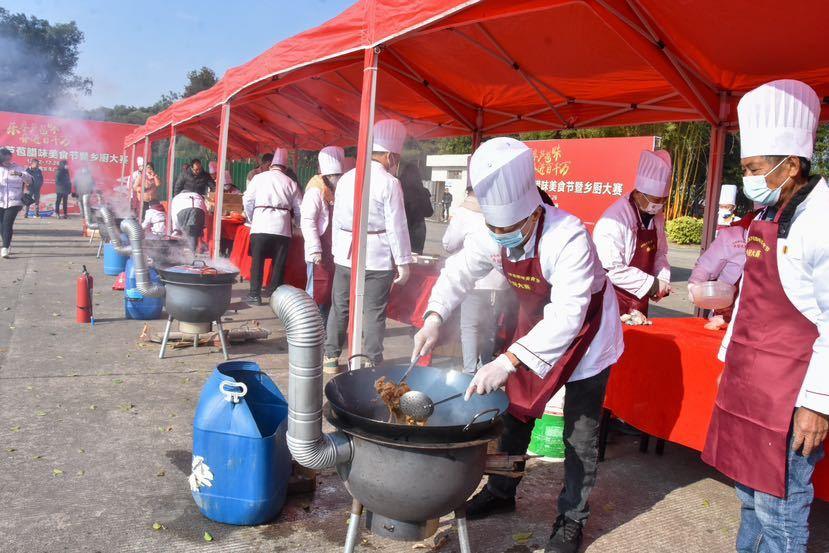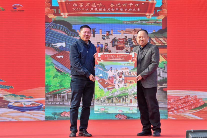 “全场倒数5、4、3、2、1!”启动仪式上,主礼嘉宾推动推杆正式拉开了“乐享芦苞味,奋进百千万”——2023芦苞腊味美食节暨乡厨大赛的序幕。
