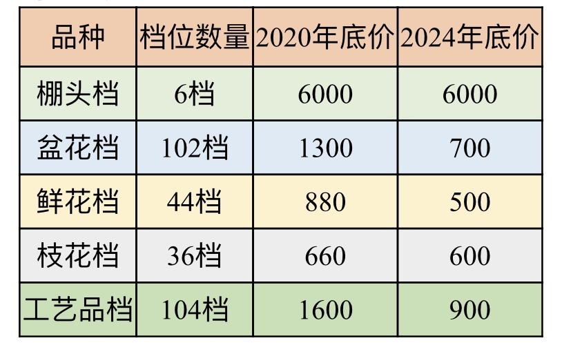 据了解,今年,荔湾迎春花市各品种档位较往年招租底价均有较大下降。其中,盆花档下降46%,鲜花档下降43%,枝花档下降9%且档口面积较往年增加一倍(从1.75米宽变为3.5米宽),工艺品档下降43.75%。