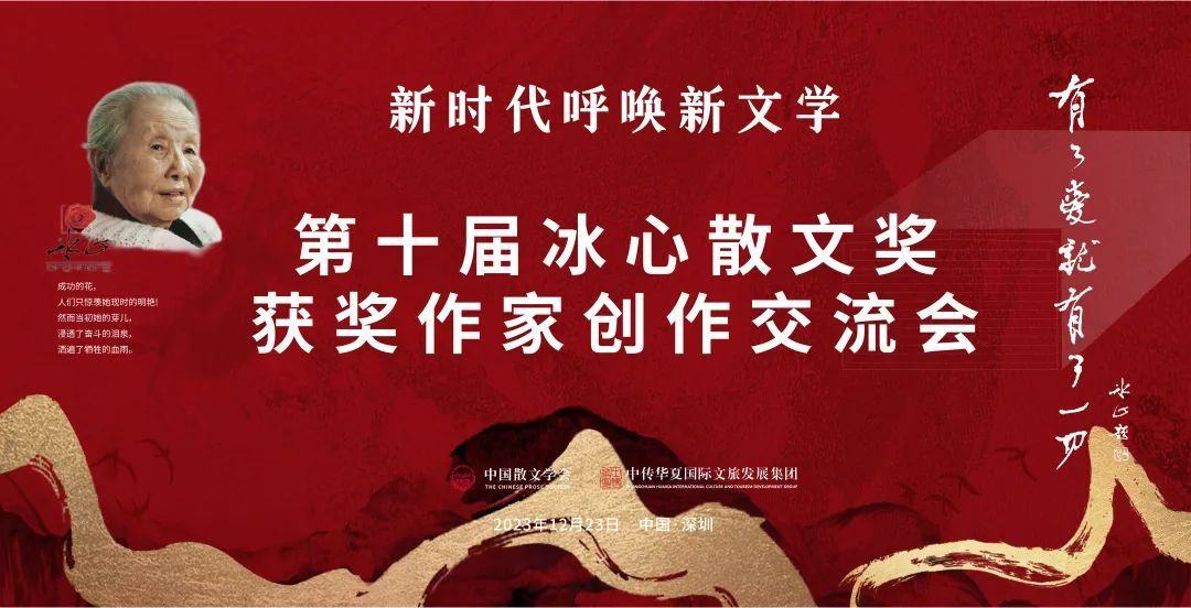2023年12月23日,由中国散文学会、中传华夏国际文旅发展集团共同举办的第十届冰心散文奖颁奖典礼在深圳举行。