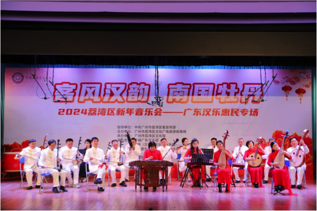 为了更好地弘扬岭南文化,12月23日下午,由中共广州市荔湾区委宣传部指导,荔湾区文化广电旅游体育局主办,荔湾区文化馆承办的“客风汉韵·南国牡丹”2024荔湾区新年音乐会——广东汉乐惠民专场在荔湾文化中心艺术香凝剧场举办。