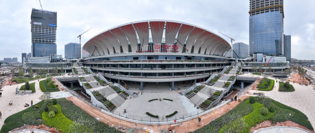 随着最后一榀钢结构杆件拼装完成,新建广州白云站宣告封顶,标志着站房钢结构整体完工,全面进入室内外装饰装修阶段。
