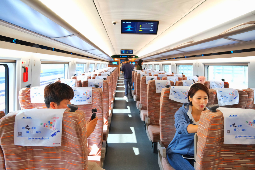 Inside of the high-speed train connecting Shantou and Shanwei (Photo by Zhuang Xiaolong/Guangzhou Daily)