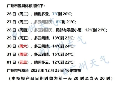 26日,晴到多云,7~20℃;