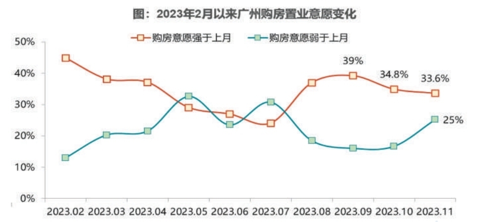对于置业者们最为关注的房价问题,黄瑜预测,2023年1~11月,广州商品住宅成交759万平方米,同比增长5.6%,全年成交量预计小幅高于2022年。一方面,目前广州市场调整已持续超2年,整体调整空间有限。2024年随着外部宏观环境的改善、政策持续发力以及居民置业信心的修复,预计市场有望筑底恢复。