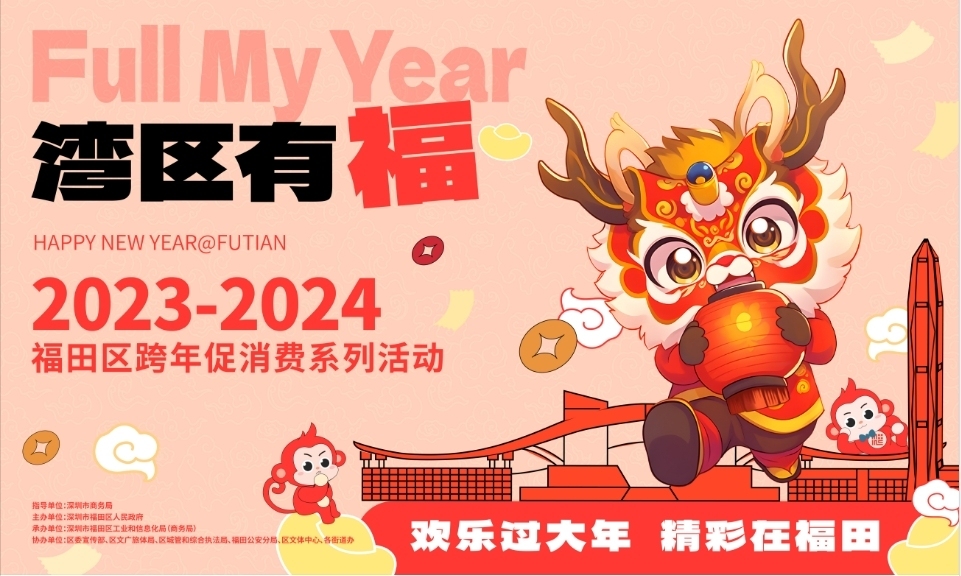 “欢乐过大年 精彩在福田”2023-2024年跨年促消费系列活动近日在深圳福田区中航城君尚盛大开幕。开幕式以“湾区有福,Full My Year”为主题,以活力四射的舞蹈表演和即将陆续开启的福田区各商圈精彩活动预告为市民驱走寒意。在新年临近之时,福田区将借文化、艺术、时尚、科技之力,以热情、活力、温暖填满人心,和市民朋友共同迎接全新的2024年。本次活动由深圳市商务局指导,福田区人民政府主办、福田区工业和信息化局(商务局)承办,福田区委宣传部、区文广旅体局、区城管和综合执法局、福田区公安分局、区文体中心、福田区各街道办共同协办。