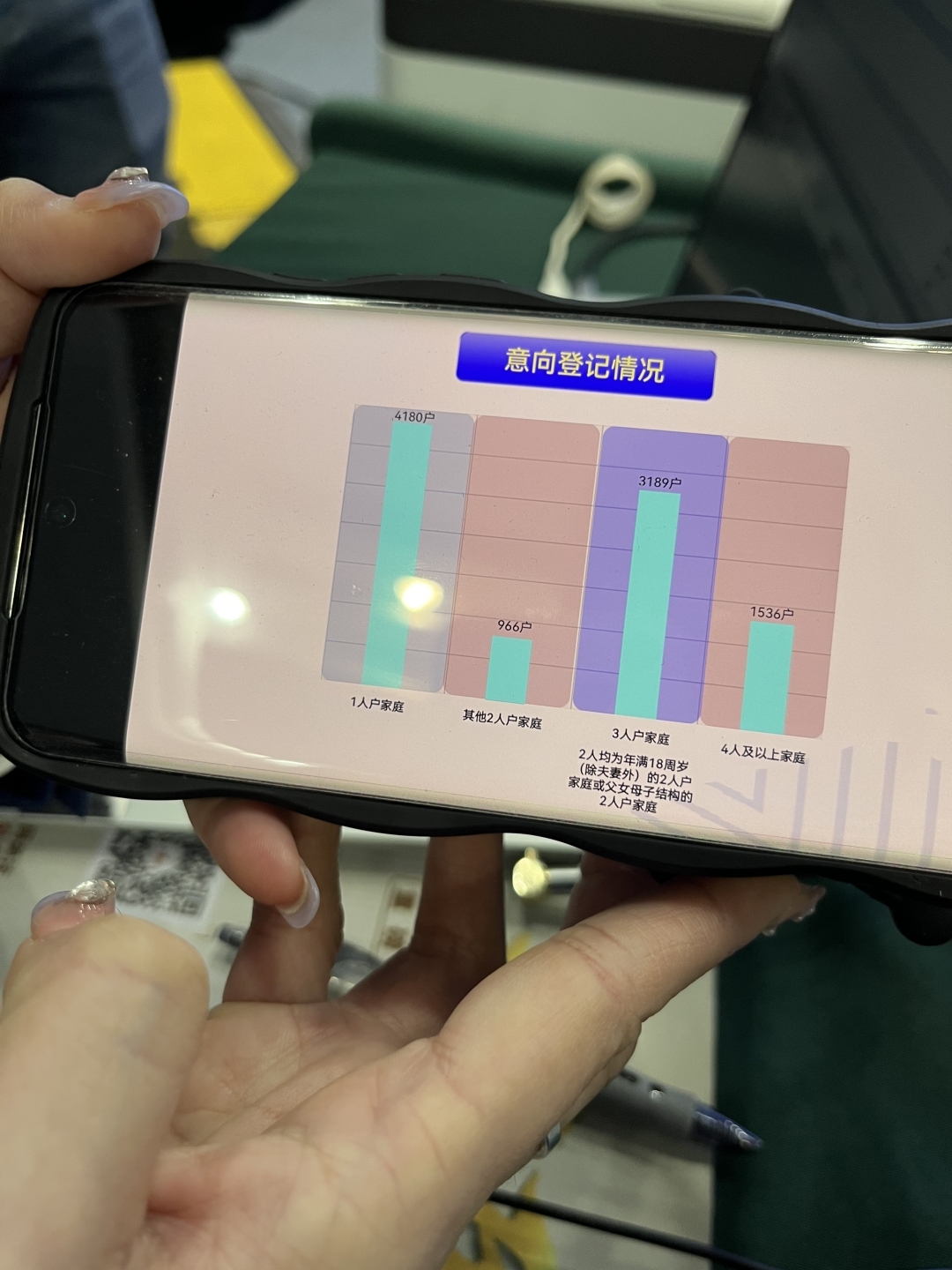 记者了解到,参加摇号预分配的9871户家庭中,4180户为1人户家庭,占比达42%。3人户家庭、2人均为年满18岁(除夫妻外)的2人户家庭或父女母子结构的2人户家庭有3189户,占比32%。