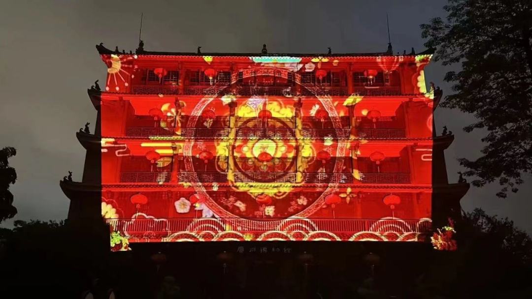 馆方发布的消息称,广州博物馆跨年夜,邀请了曾经承担广州国际灯光节内容设计团队进行光影设计,通过提取广府特色元素、广博馆藏文物形象等,利用数字化的手段,在2023年最后两分钟在镇海楼进行建筑立面投影。灯光秀的最后设计了倒数动画,用这种最有“仪式感”的方式,陪大家度过2023年最后的时光。