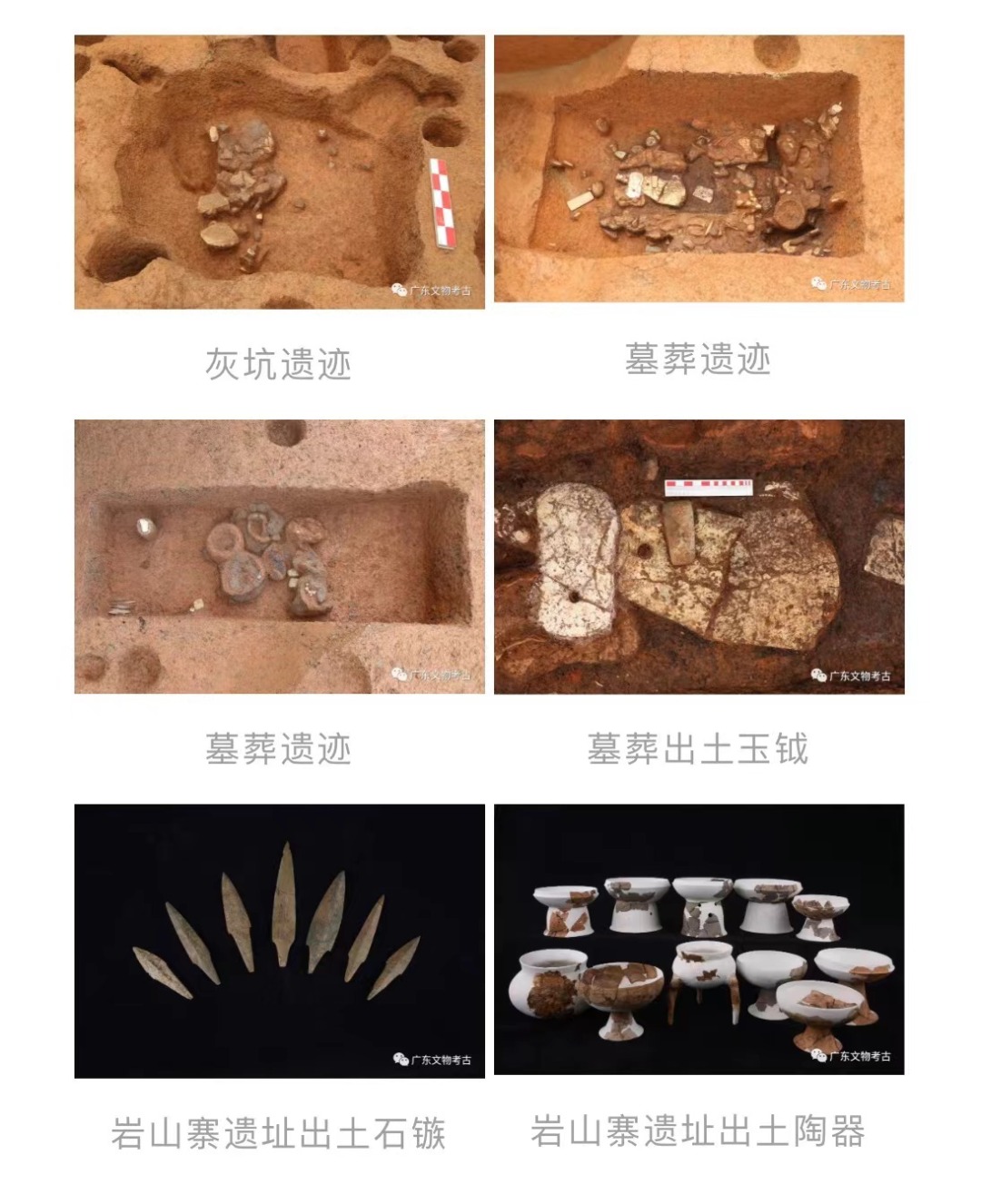 据“广东省文物考古研究所”相关消息,早从2019年开始,广东省文物考古研究所联合北京大学考古文博学院、清远市博物馆与英德市博物馆等单位就已持续开展主动性考古工作,在石岭、望北岩及岩背等三处地点共发掘近1400平米,清理出墓葬、灰坑、柱洞、房屋、火塘与烧土遗迹等重要遗迹,出土陶器、磨制石器、玉器、青铜器、人骨及木质遗存等各类文物标本1300余件。