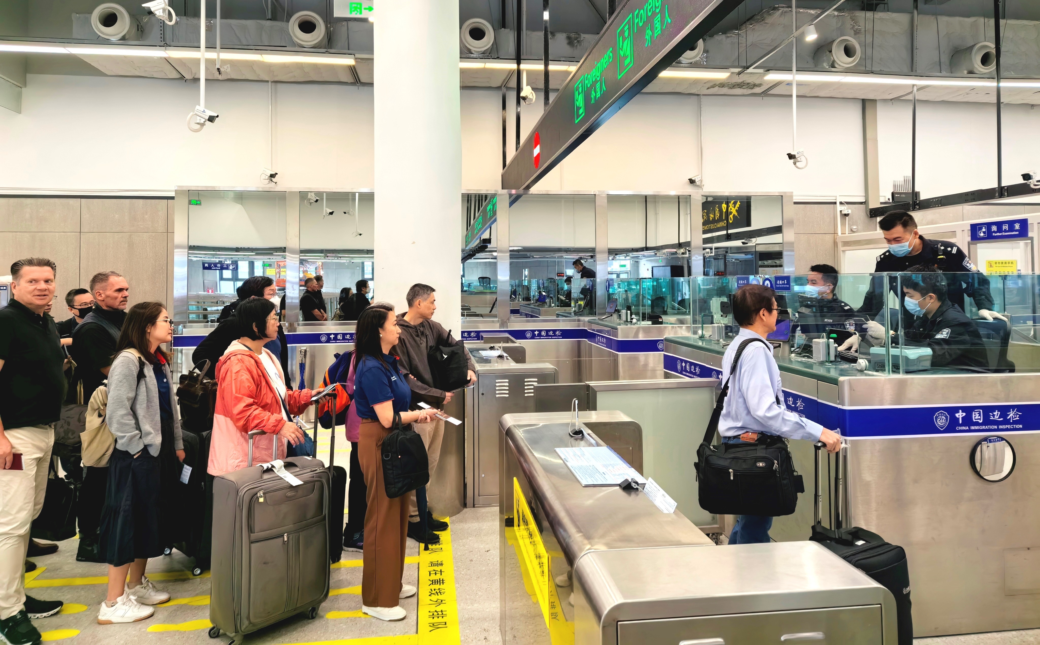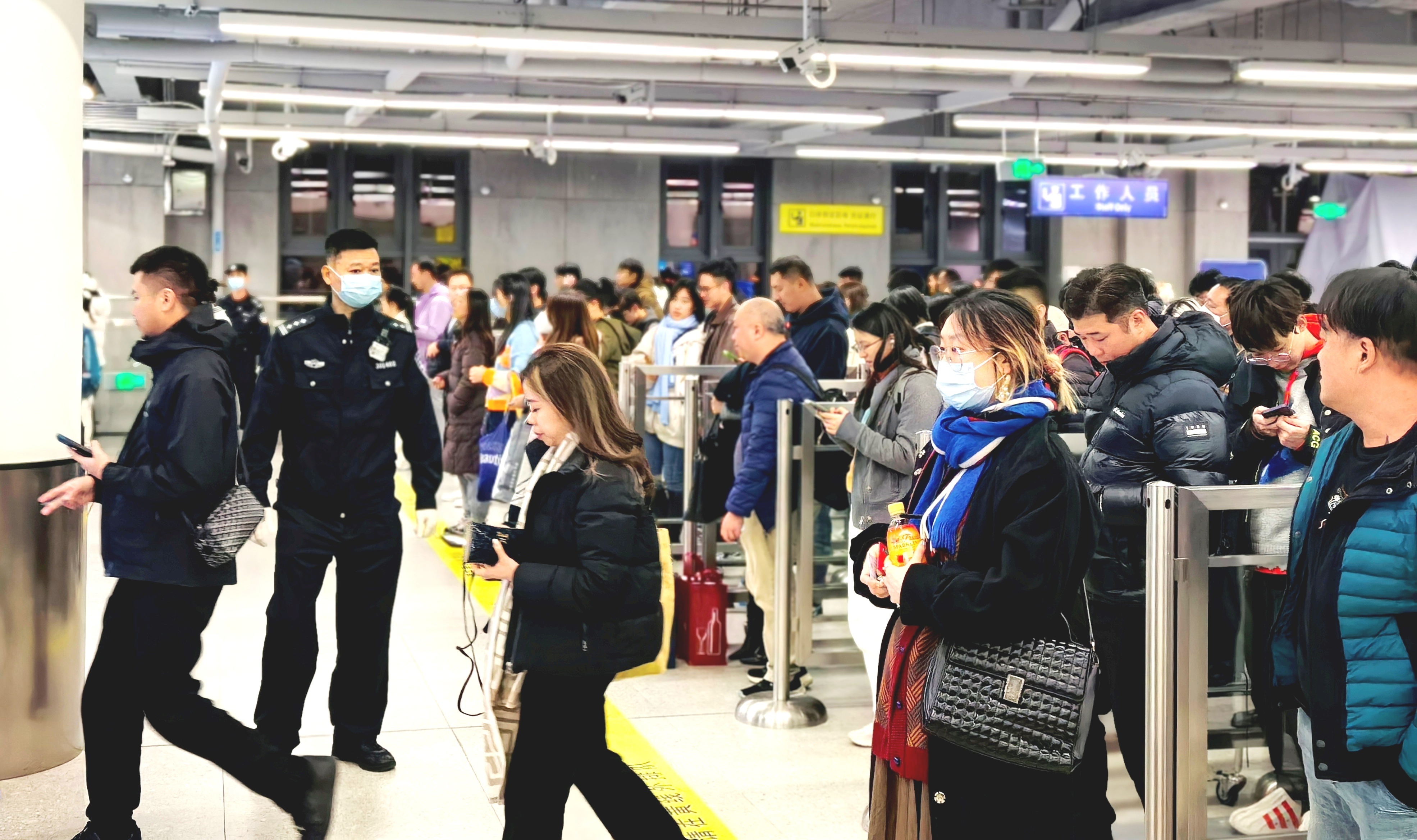 据皇岗边检站有关负责人介绍,香港公众假期(12月22日至12月26日)恰逢周末,虽天气寒冷,但难减人们的出游意愿,深港两地居民“双向奔赴”依然热情高涨,粤港澳大湾区融合发展进一步彰显。连日来,皇岗、福田口岸人潮涌动,出入境客流持续高位运行,占比60%的港澳居民成主力军。据皇岗边检站统计,仅12月22日至23日,经皇岗、福田口岸出入境人员近42万人次,其中仅福田口岸出入境旅客逾33万人次。各类交通运输工具2.2万余辆次。