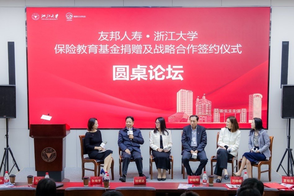 (签约仪式后,友邦人寿及浙江大学代表共同出席“金融保险业高质量发展”圆桌论坛。)