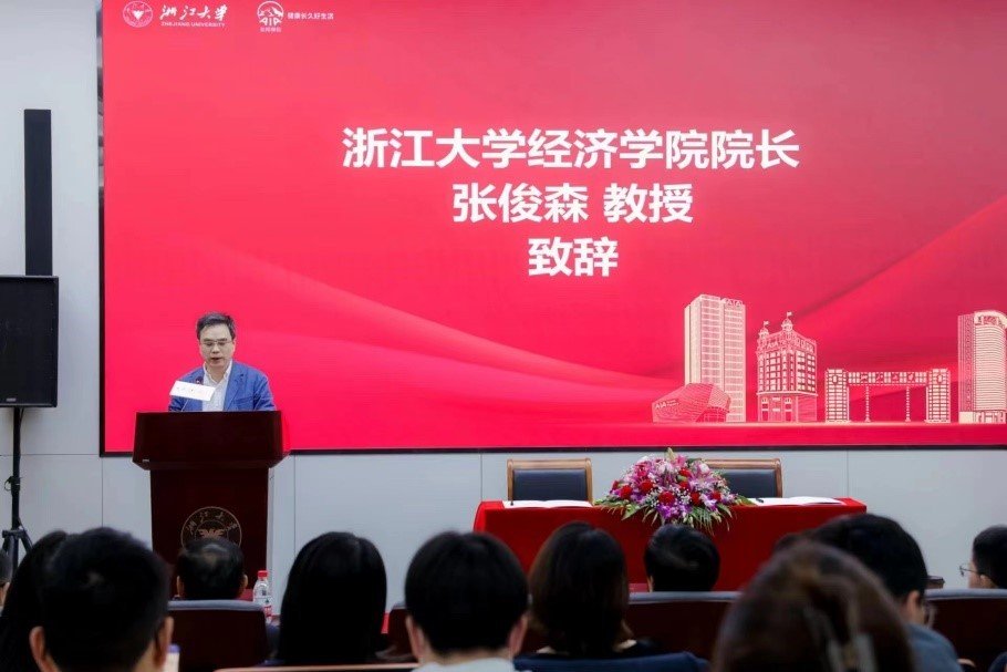 (浙江大学经济学院院长张俊森教授为签约仪式致辞。)