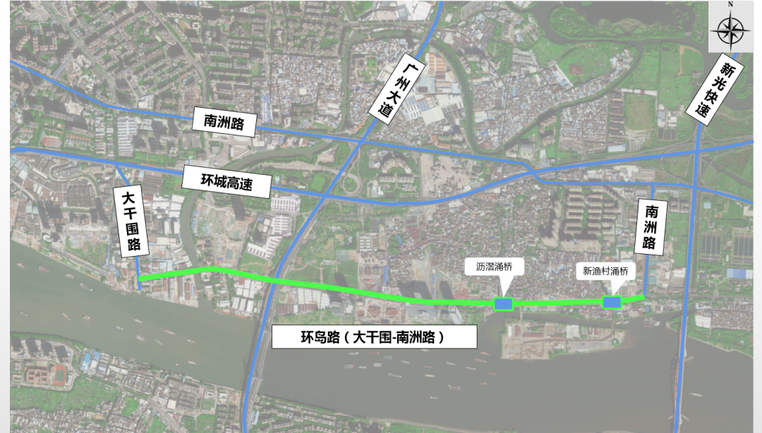 今日,记者从海珠区住房和建设局获悉,环岛路(石岗路-大干围)及环岛路(大干围-南洲路)沥滘涌桥及新渔村涌桥即将通车试运行。
