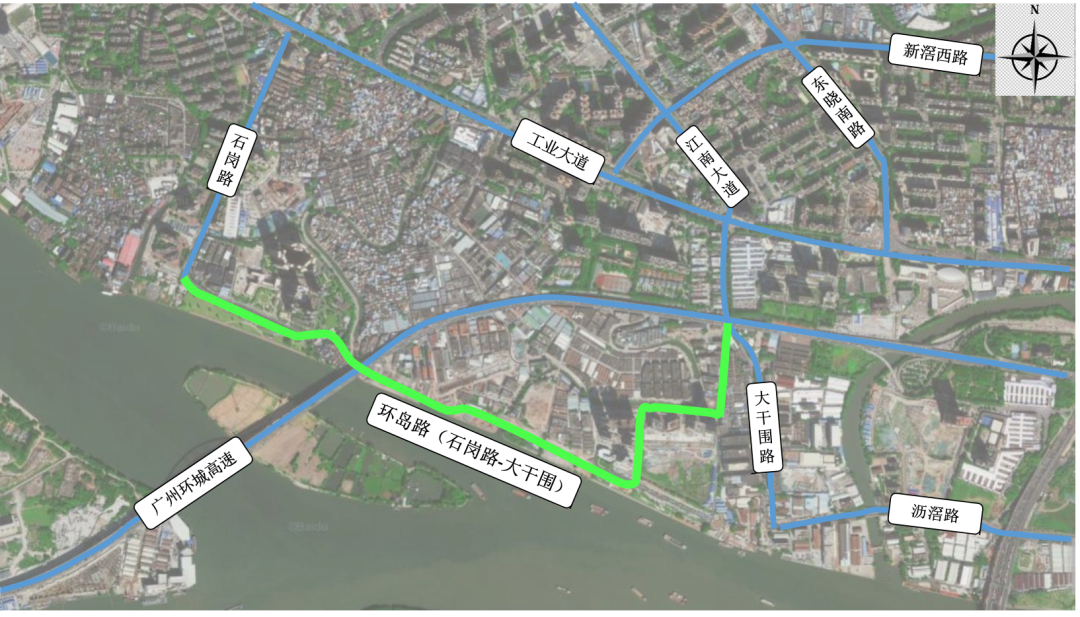 环岛路(石岗路-大干围)及环岛路(大干围-南洲路)由海珠区住房和建设局组织建设,两段环岛路已基本完工。环岛路(石岗路-大干围)结合周边现有道路实现贯通,计划在2023年12月28日通车试运行。