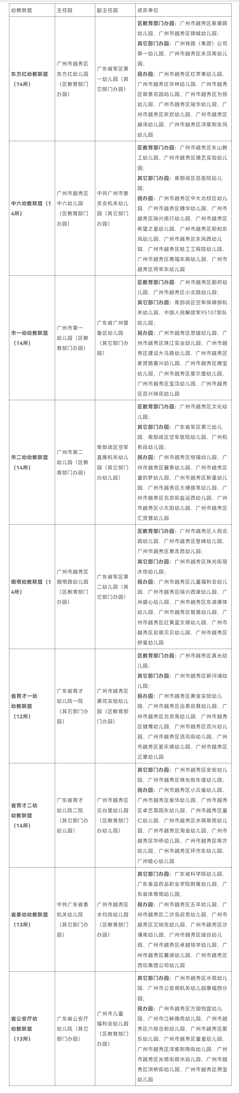 越秀区幼教联盟成员一览表