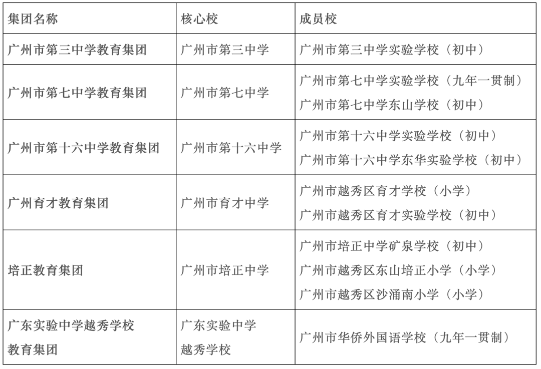 备注:广州市东风实验学校为广州执信教育集团成员校。