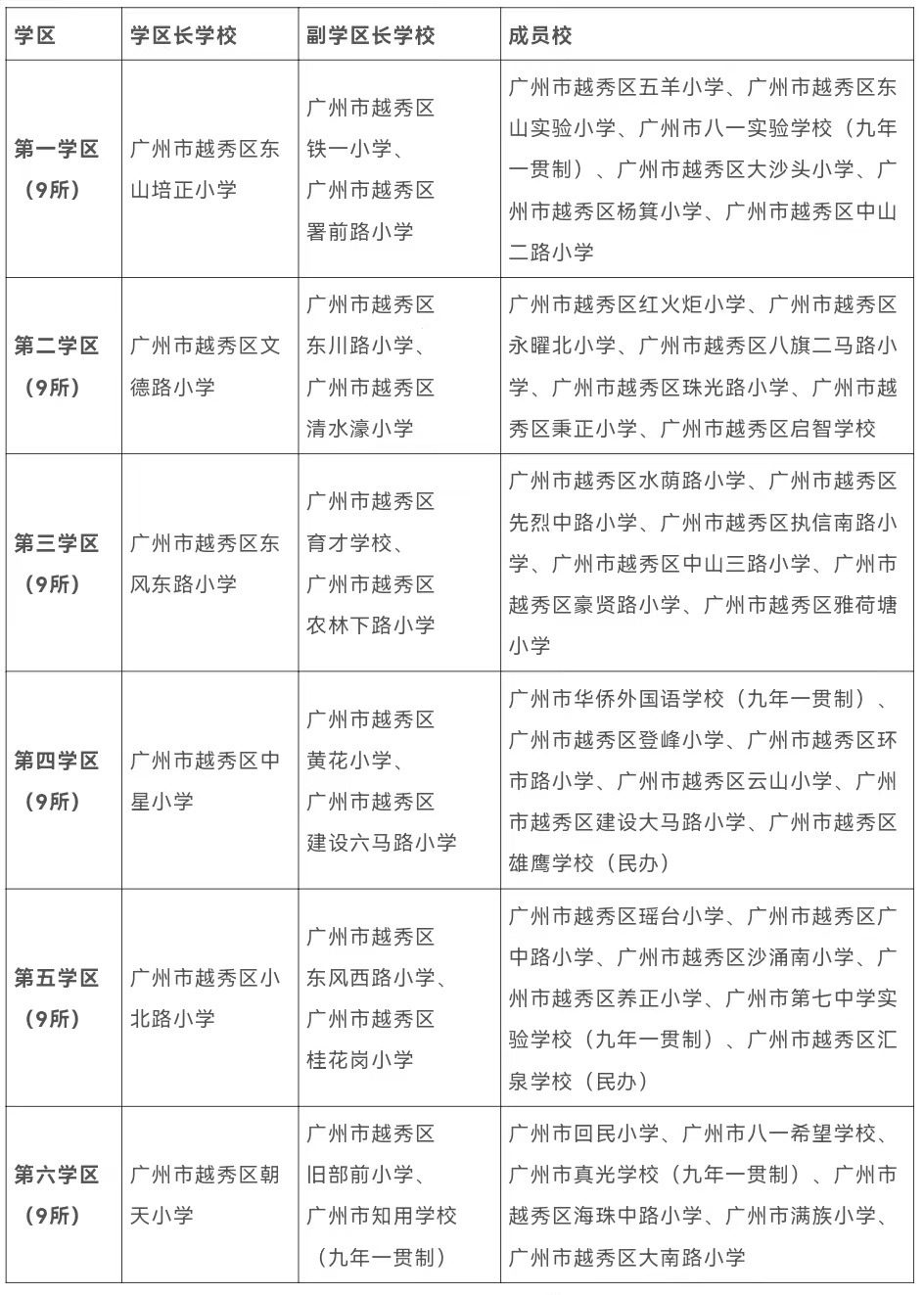 越秀区属小学学区成员校一览表