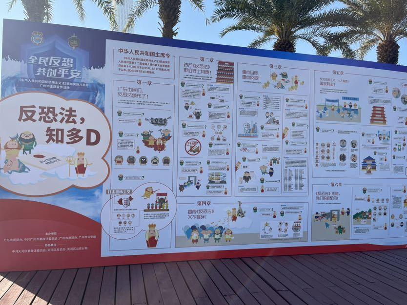 据悉,《中华人民共和国反恐怖主义法》是我国第一部专门性的反恐立法,于2015年12月26日颁布,2016年1月1日实施,至今已有八年。八年来,广州市反恐办通过内容丰富、创意新颖、喜闻乐见的多元宣传形式,推动反恐怖主义法的普法工作不断深化,号召市民学好用好反恐怖主义法。