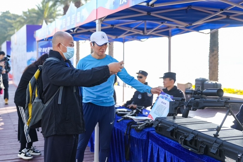 活动现场还设置了丰富的互动摊位,“反恐法,知多D”展板加深市民对反恐怖主义法的认识和了解;泰瑟激发器、高速射流器等反恐装备展示,让群众近距离感受、了解反恐防暴武器装备性能、作用……