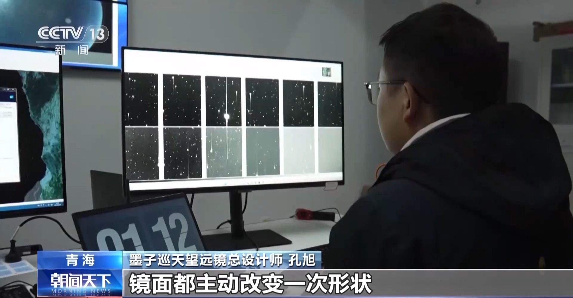 墨子巡天望远镜总设计师孔旭:(主镜)上是一层银色的铝反射膜。星光打到镜面上以后,通过反射膜,反射到主焦装置上去。镜面可以随时调整形状,使得它任何时候都能完美地成像。这是我们一个硬核技术——薄镜面面型主动矫正技术。
