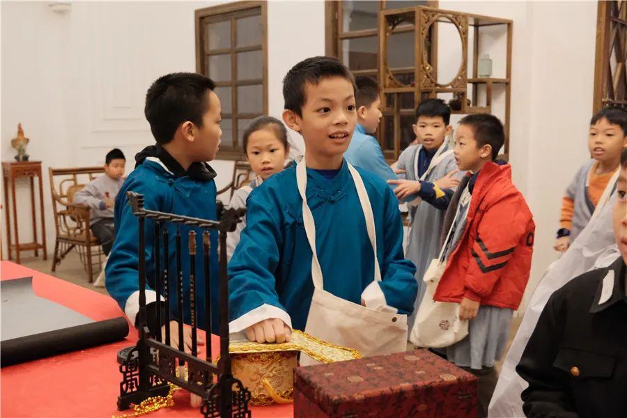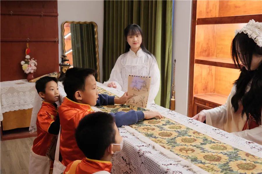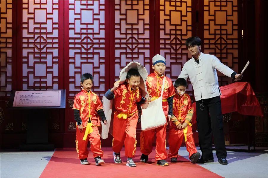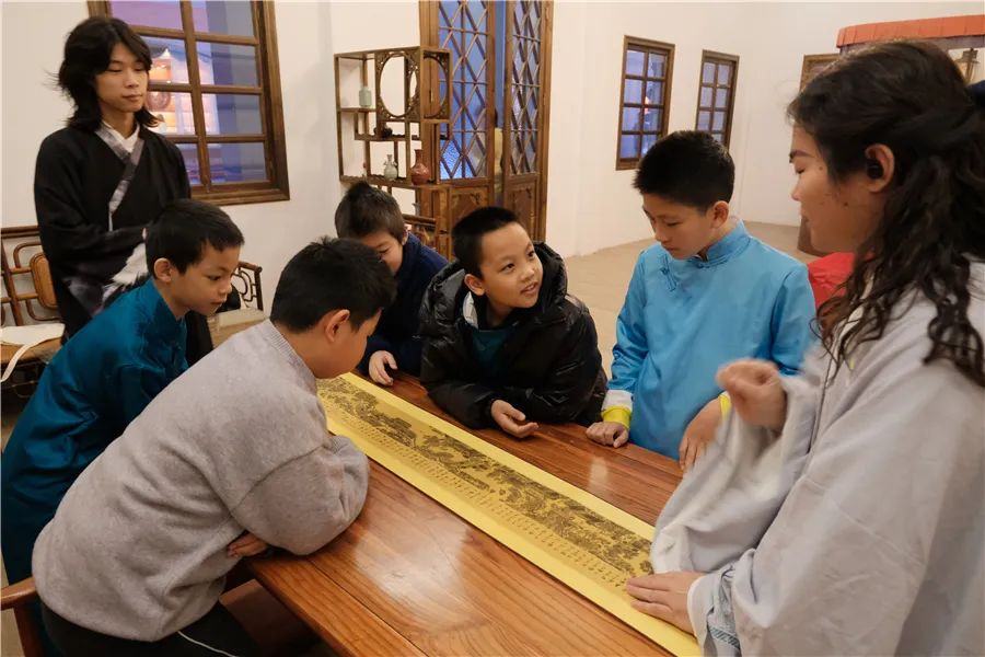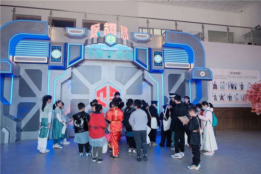 12月24日,“凝聚青春力量 共建活力社区”钟村街祈福新邨社区青少年湾区研学行继续出发。30名祈福新邨社区的青少年来到番禺区石壁街湾区影视城探翎岛剧场,身着汉服穿游在市集、饭店、拳馆、茶馆、典当行各处,带着“寻回国宝”的任务四处寻找线索……通过生动有趣的沉浸式一日“演学”,在演绎经典剧目的过程中穿越历史,树立家国情怀,传承红色基因。