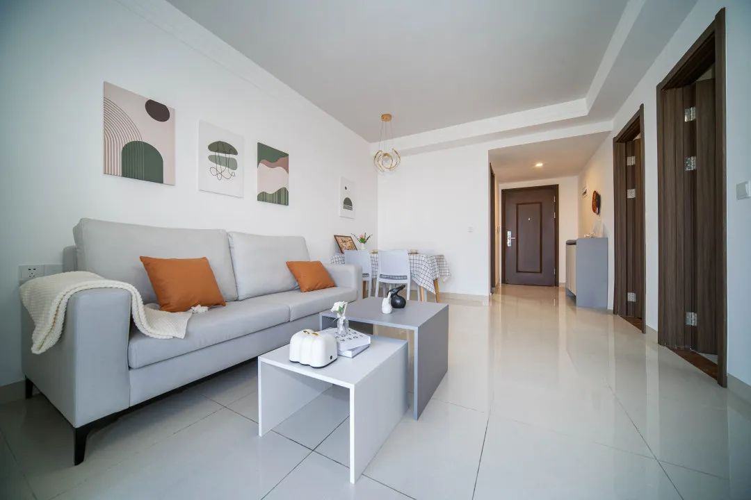 这次投入运营的青年公寓,户型分为一房一厅、两房两厅、三房两厅等,相比港澳新青寓一期项目的大单间,此次推出的二期项目户型选择更为丰富多样。在三房两厅的公寓内,阳台外绿意盎然,房间内的电视、洗衣机、电冰箱等基础家电均已齐备,房间也带有简单的家具,拎包入住。