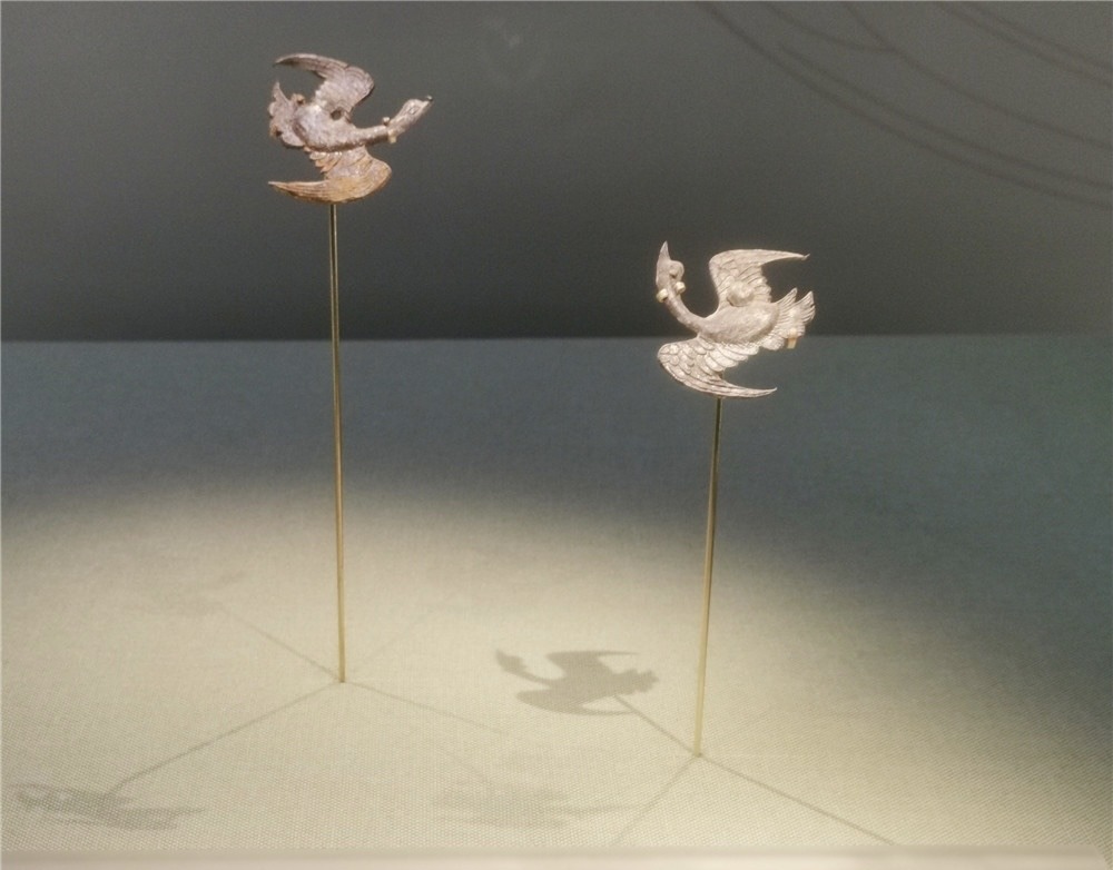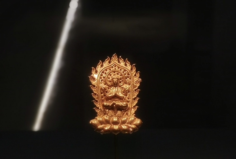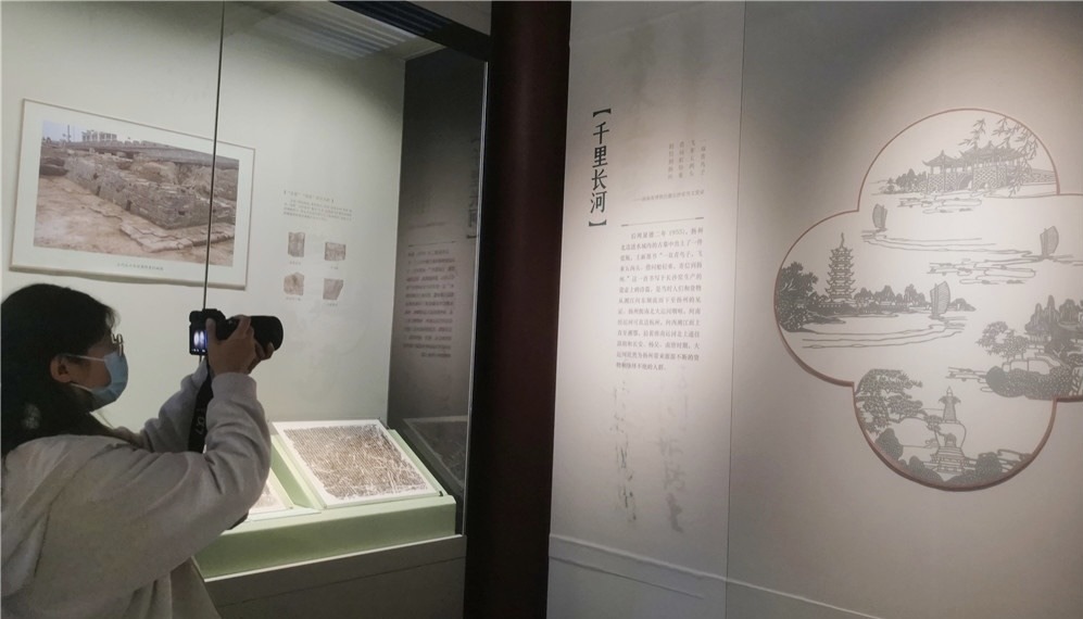 第二部分“千里长河”,通过扬州考古发现的产自定窑、越窑等不同窑口的精美瓷器,錾刻金佛造像、带供花飞天装饰的铜耳坠等精品文物等,展现了扬州城在大运河与丝绸之路交织影响下人才汇聚、文化多元、商贾云集、繁华富庶的历史风貌。
