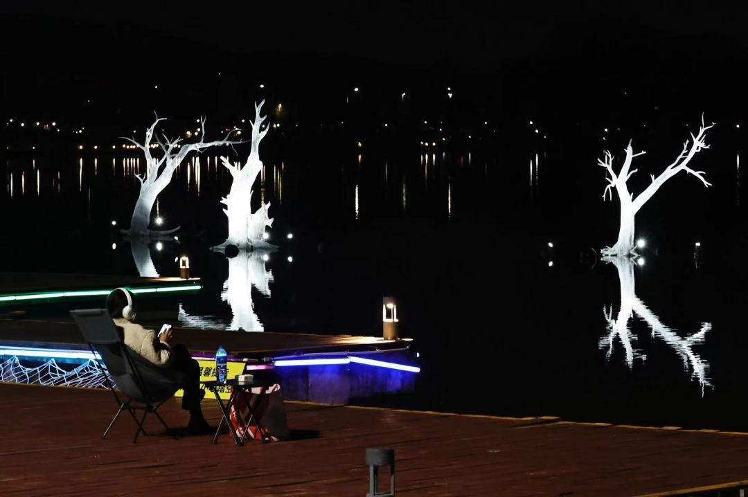 据主办方介绍,艺术季采取“11+1+1+1+n”模式,即11组艺术作品,1个诗歌展,1个微音乐会,1个露营市集,n个互动。从活动开始到明年2月期间,每周都会组织不同主题专场节目及形式多样的演出“树下音乐会”。同时,文创集市也在活动期间鸣锣开市,集市将贯穿元旦、春节和元宵三个阶段。现场还设有当下年轻人最热衷的社交休闲新方式“围炉煮茶”。