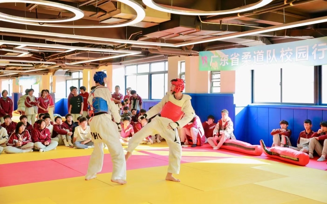 开幕式后,广东省柔道队和跆拳道队运动员在衡立高级中学柔道馆内为同学们进行专业柔道和跆拳道技术展示。通过生动的演示,向同学们传递了柔道“以最小的力量制胜最大的对手”的理念和跆拳道“以速度和力量的精妙结合制胜对手”的魅力。