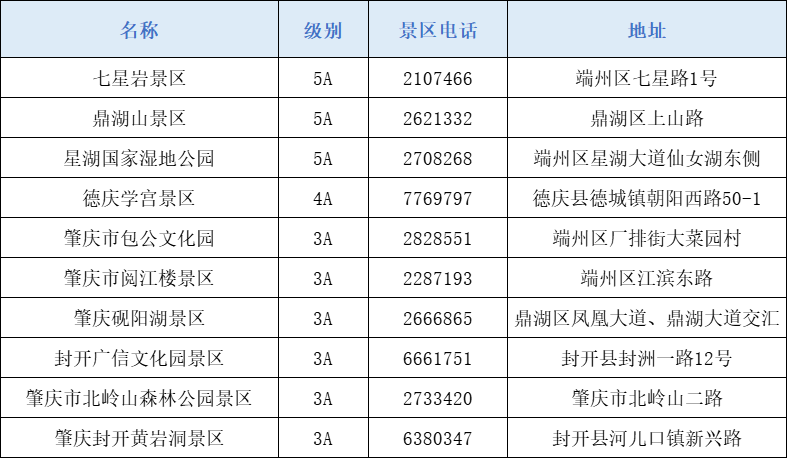 肇庆这些国有景区为主要研学游景点,对广东省内在读的全日制大中学生实行免票(见下图)。