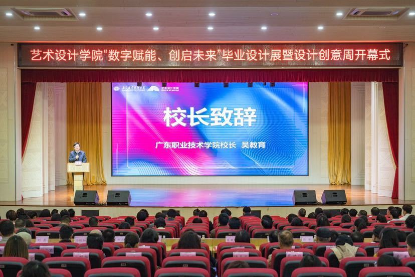 12月28日,“数字赋能、创启未来”——广东职业技术学院艺术设计学院2024届毕业设计展开幕式暨广东省中高职艺术设计协同发展联盟成立大会在该校禅城校区大礼堂举行。