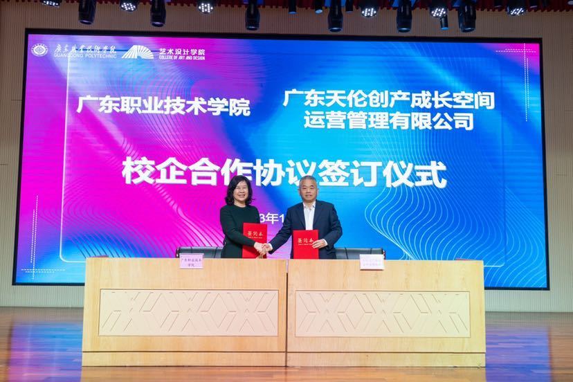 作为企行业代表,广东省家纺家居行业协会秘书长洪泽芳表示,高校坚持产教融合、校企合作,为各行业发展提供智力支持,希望未来校企能够继续紧密合作,为各行业注入新鲜活力,提供高技能专业人才。随后开展校企合作签约仪式,学校与广东天伦创产成长空间运营管理有限公司、广州华之尊光电科技有限公司签订校企合作协议。
