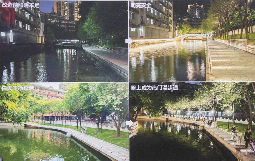 今年,荔湾区坚持以人民为中心,践行人民城市理念,从解决涌边夜间照明、出行安全等群众“急难愁盼”的问题出发,在听取属地街道社区、周边居民群众、两代表一委员和原荔枝湾涌综合整治工程设计专家等各方意见后,本着节约原则,启动实施荔枝湾涌滨水环境整治工程。工程以微改造的手法,通过开展空间优化、驳岸修补、功能照明、绿化美化、文化标识等,尽量保留河涌岸线原貌,对沿岸滨水环境进行优化改造提升,恢复西关水文化和老广州传统生活形态,努力为群众营造更加舒适、安全的滨水生活环境,不断提升群众治水幸福感和获得感,让老城市焕发新活力。