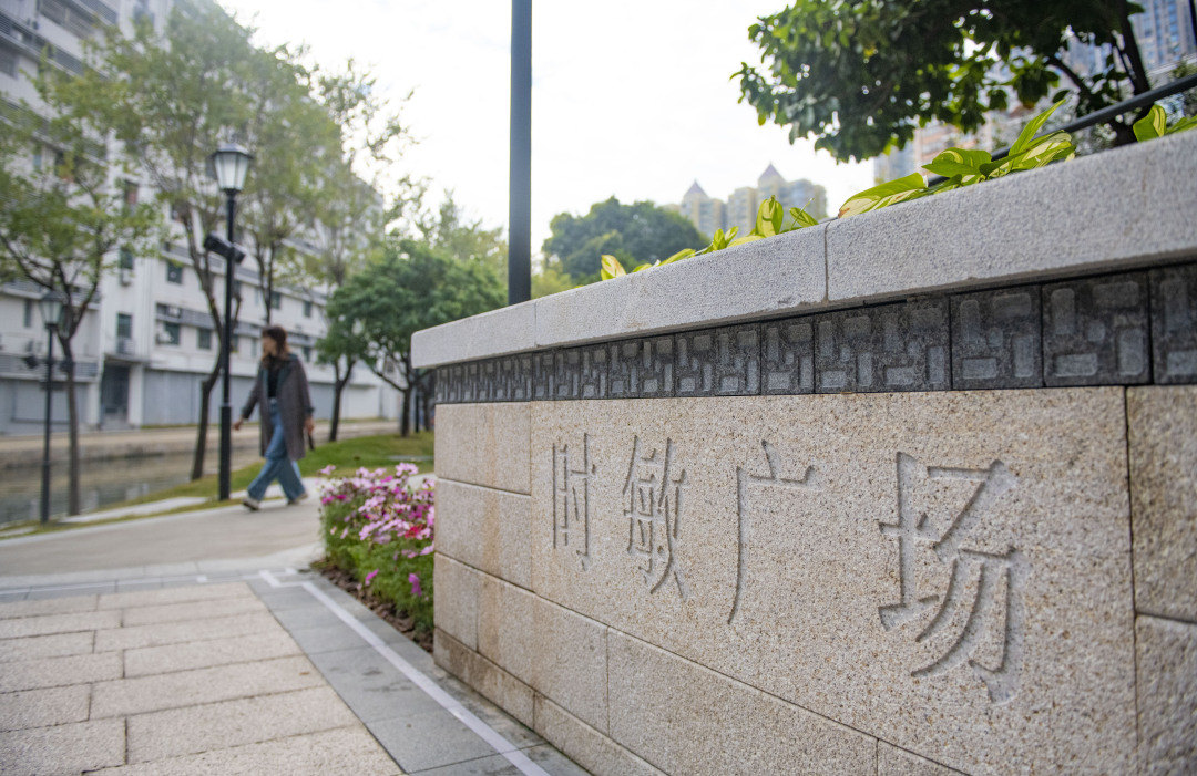 时敏广场改造,把原密集遮蔽、多高差的入口空间变成通透疏朗的桥头广场,扩大公共空间面积,优化无障碍功能,提供畅顺通达的交往场所,注入文化标识、特色铺装等精细设计,唤起老居民记忆。