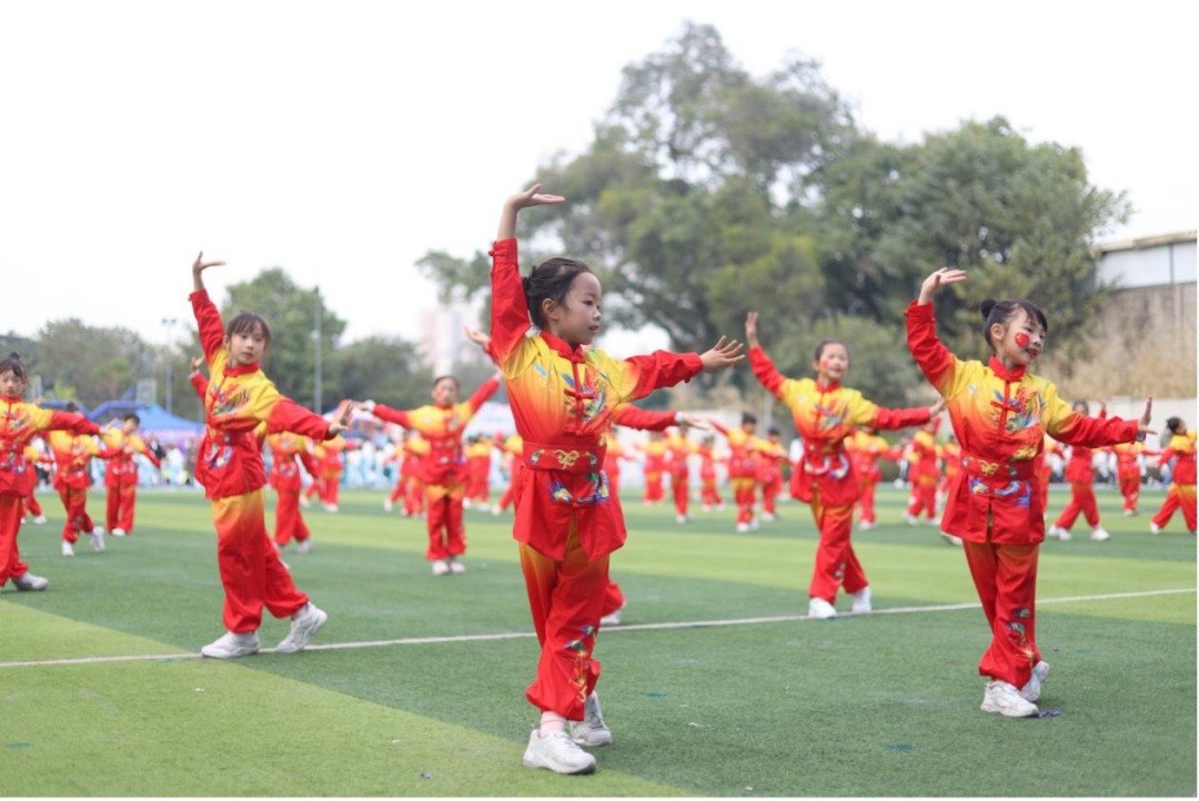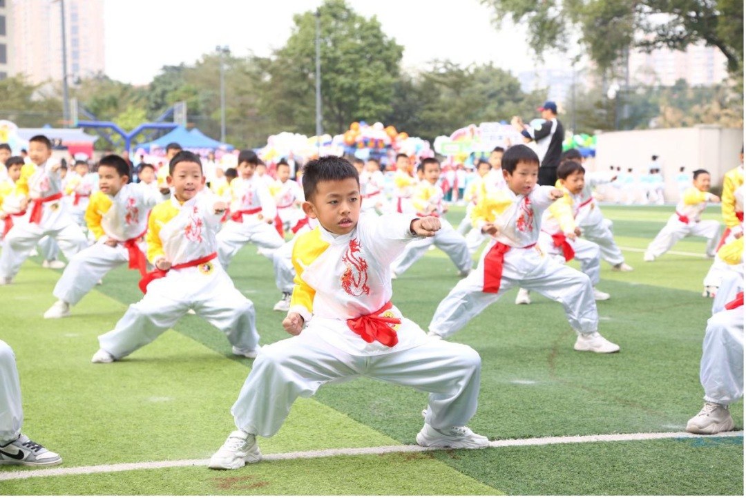 在2023年,省实荔湾二小成功申报广东省武术进校园试点学校。该校此前武术队首次参加区赛,便获得集体项目第一名、乙组团体总分第一名、丙组团体第二(与第一名同分)、九个个人单项第一名的成绩。在此次体育节的开幕式上,广东武术队的世界冠军团队也直接加入同学们的展演活动,向师生展示武术的魅力。第十四届世锦赛南拳冠军李剑鸣还为同学们送上寄语。他期许同学们天道酬勤,踏踏实实地练好武术中的一招一式,以昂扬的斗志和饱满的热情投入到学习和训练中,在阳光下快乐健康地成长。