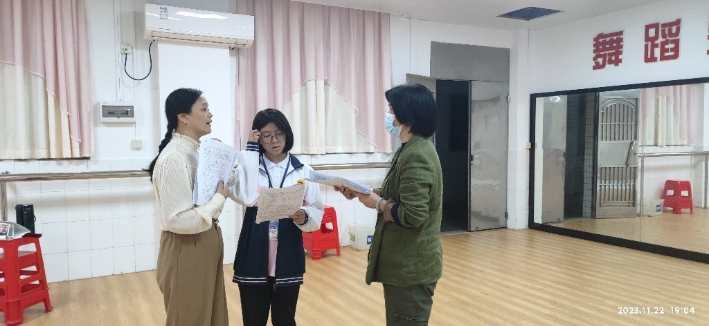 为了不耽误学校的教学任务,她从非毕业班中的教师且有一定表演、声乐基础的老师中选择话剧协调人;与区老师有较多接触的老同事,也成为选角着重考虑的因素。在此过程中,陈亚玲感动的是,不少被选中的老师二话不说,积极投身准备和排练工作当中,其中两名退休老师——李淑华、尤文贤也参与饰演角色。学生中有近30人主动报名,非常踊跃。最终,这部话剧确定了17名参演师生。
