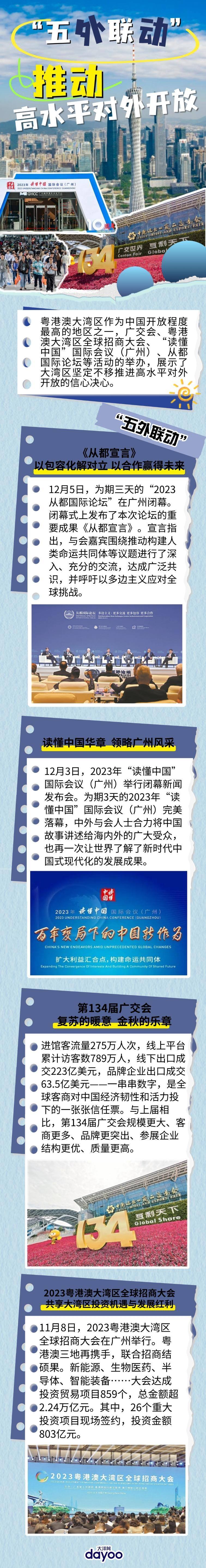 2023年是《粤港澳大湾区发展规划纲要》发布四周年,这一年,大湾区生活圈更加便利,科技创新活力迸发,海洋经济蓬勃发展,“百千万工程”走深走实,高水平对外开放决心坚定,“绿美广东”深入推进。潮涌大湾区,风劲好扬帆,粤港澳大湾区高质量发展正注入强劲动能。戳海报,看大湾区2023年的高光时刻!