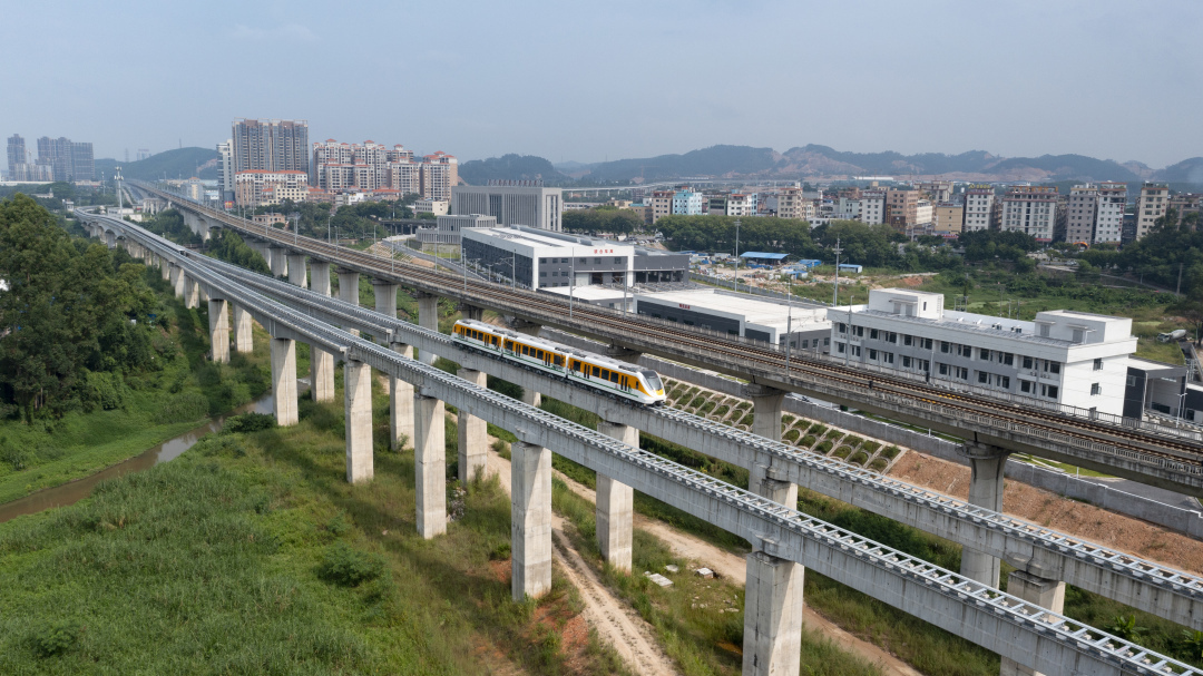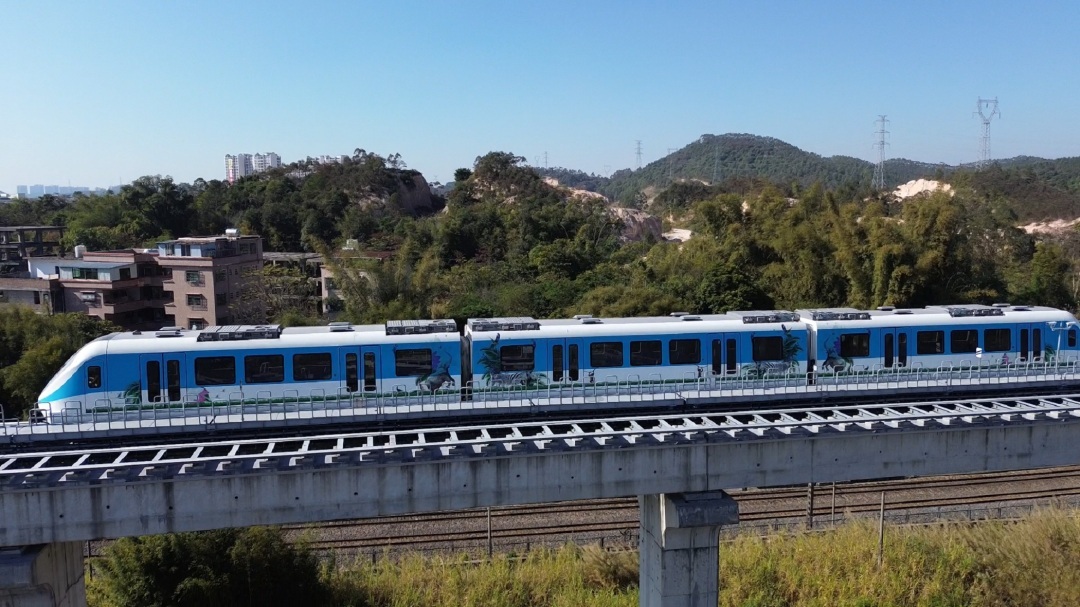 元旦将至,清远磁浮旅游专线列车从银盏站出发,向长隆站行驶而去,为即将到来的开通试运营进行各项测试。