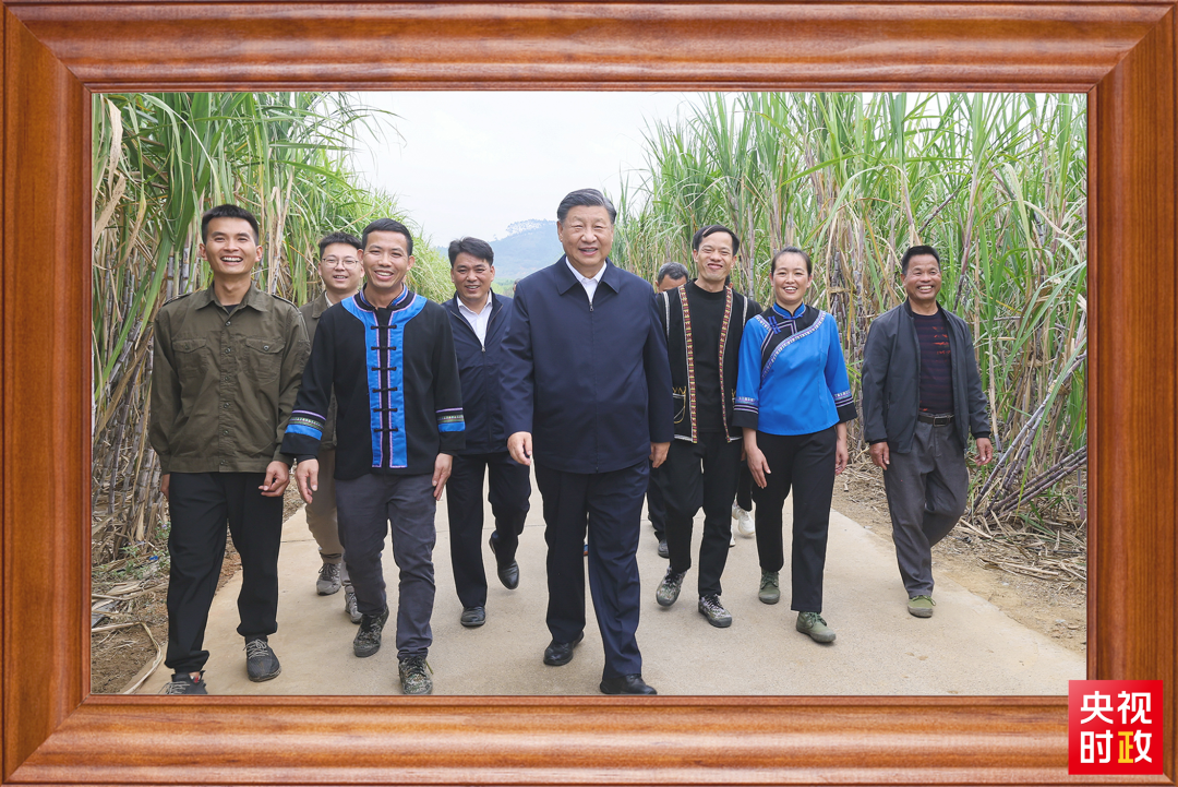 2023年12月14日,习近平总书记来到广西来宾市国家现代农业产业园黄安优质“双高”糖料蔗基地考察。