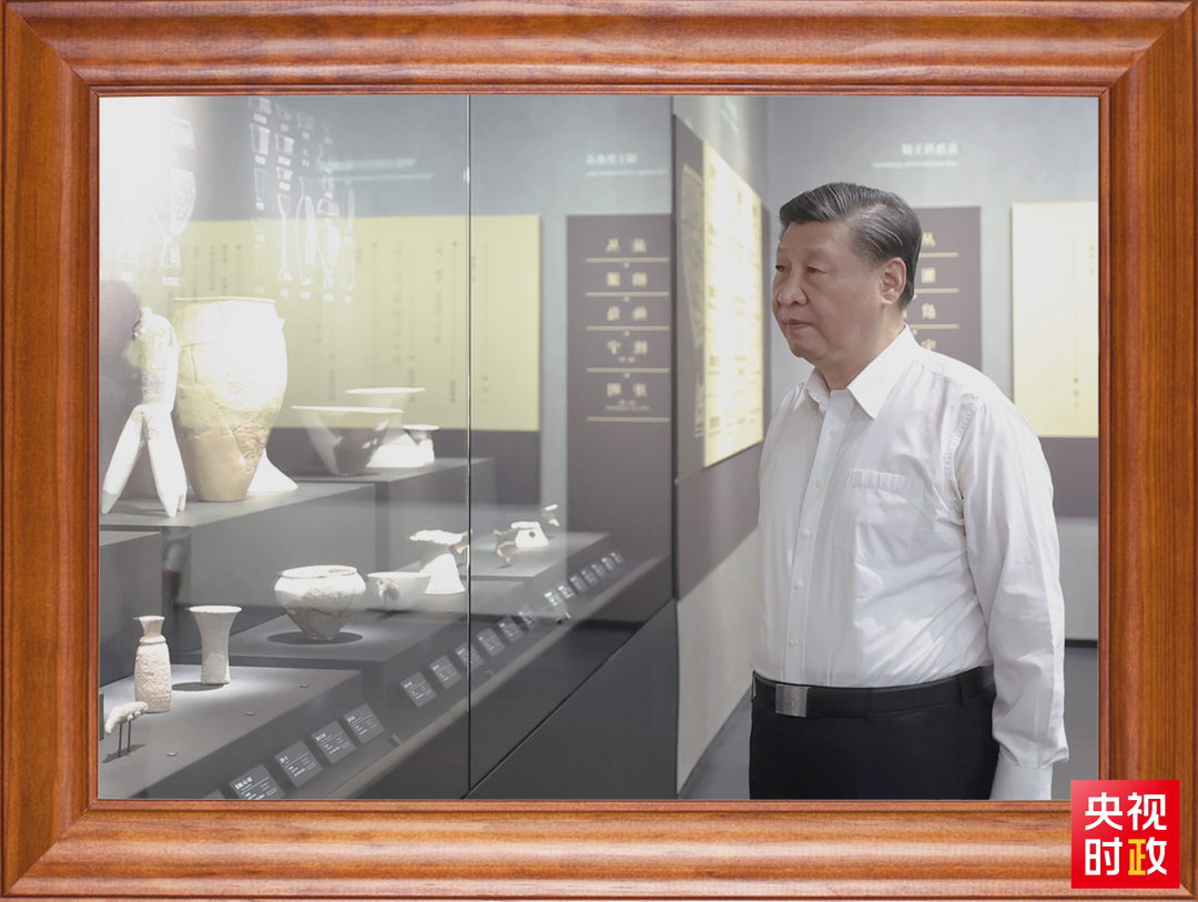 在习近平总书记的书架上,有这么一张照片,记录着他的文化足迹——2023年7月26日,总书记来到位于四川省德阳市广汉市的三星堆博物馆新馆,了解三星堆遗址发掘历程和古蜀文明成果。