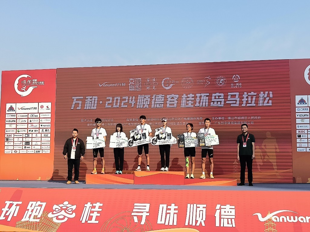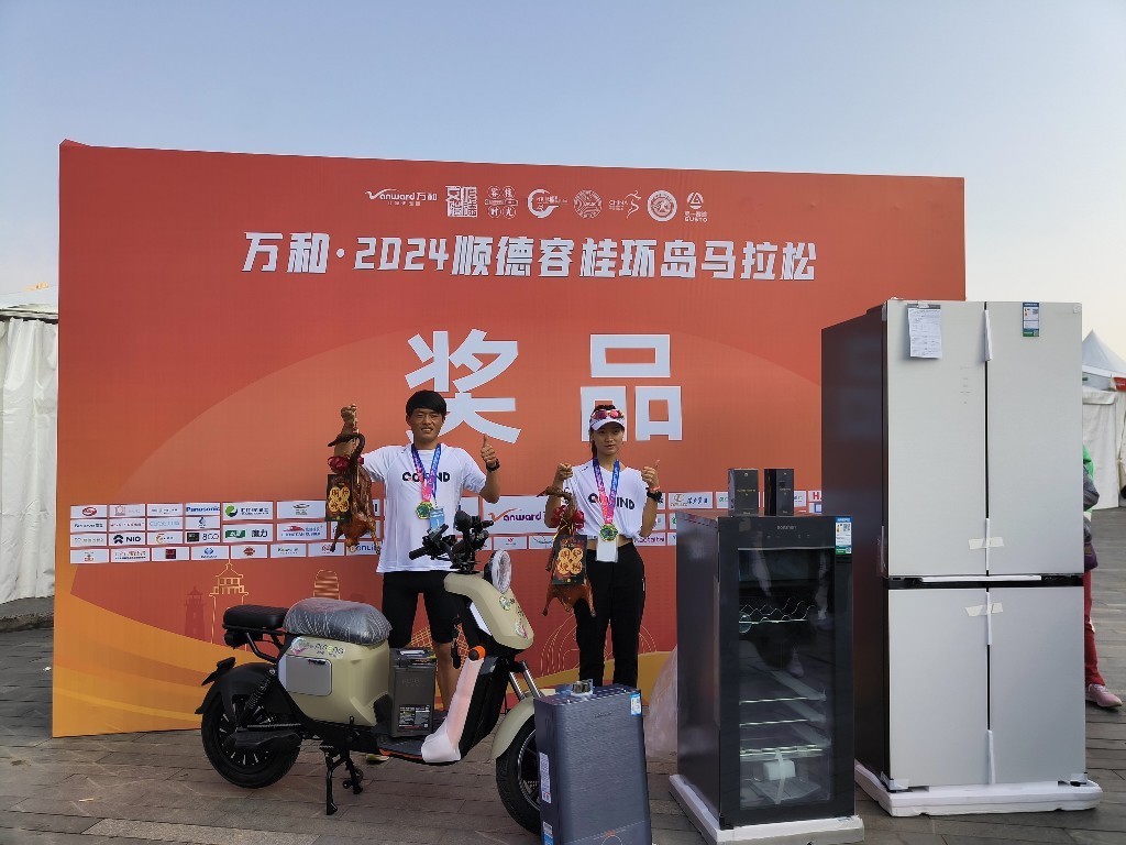 1月1日,佛山首个A1类全程马拉松赛事——顺德容桂环岛马拉松开跑。在全程及半程马拉松颁奖现场,广州日报全媒体记者看到,冠亚季军选手,奖金、奖品丰富,其中奖品既美味又实用,展现了容桂深厚的制造业底色和亮丽的美食文化名片。