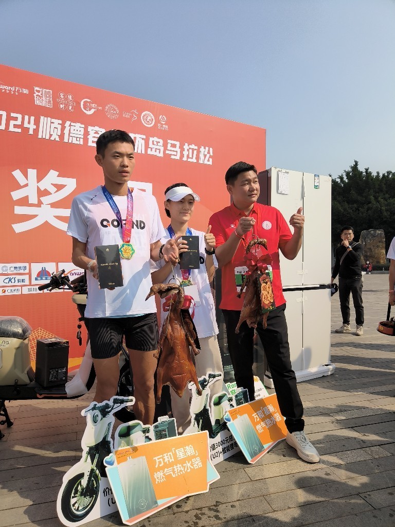 “第一次拿到这么丰富的奖品,还有一只美味的烧鹅!”半马男子冠军马昭尖惊喜地说。