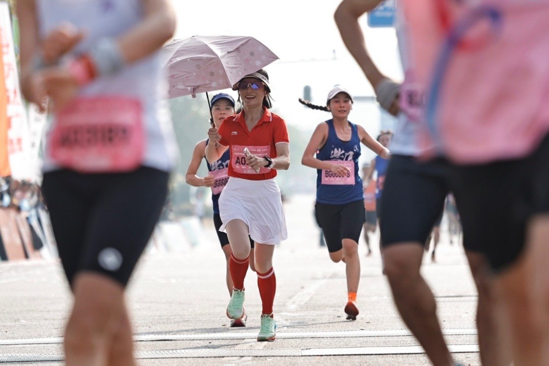 记者在现场了解到,这是目前首场以粤港澳大湾区为定位的马拉松赛,同时也是全国规模最大的女子半程马拉松赛,比赛报名总人数19298人,其中女性13767人。赛程包括半程马拉松、10公里健康跑和5公里欢乐跑,设有闺蜜组、情侣组、家庭组等特色组别,以及跑团、商学院赛等比拼环节。