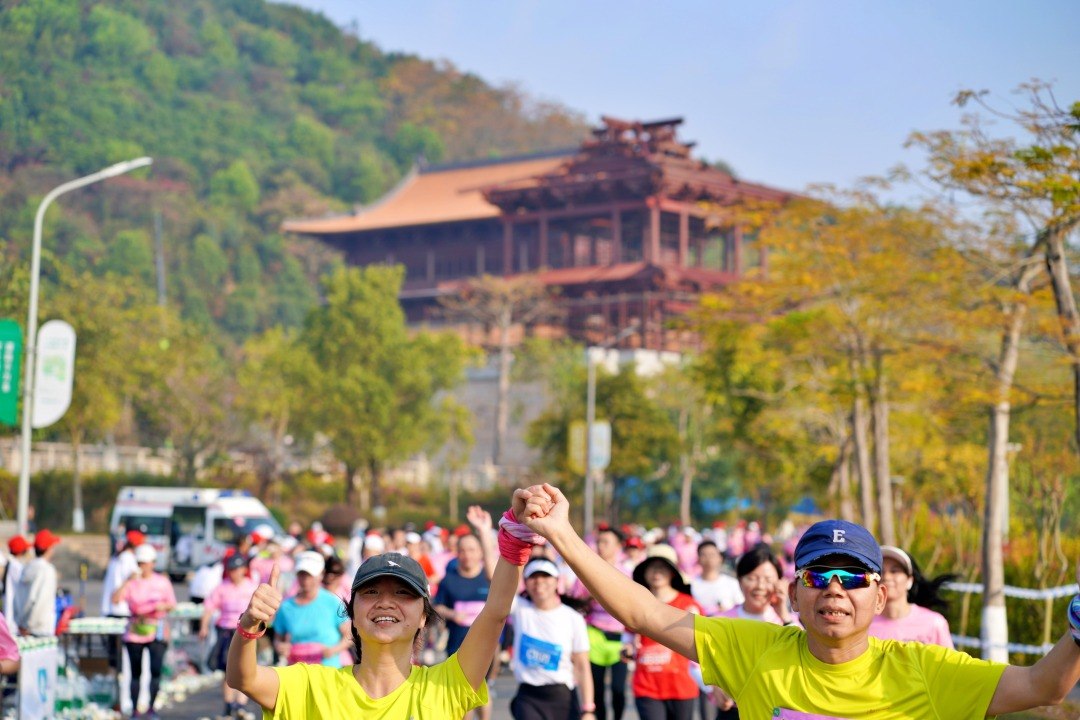 本次,赛事起点位于增城广场,往返途经圣皇洲、樱花园、荔湖湿地、万寿禅寺等网红打卡点,碧道、花海、湖畔、江岸、飞鸟集、缓跑径、古驿道等交错切换。