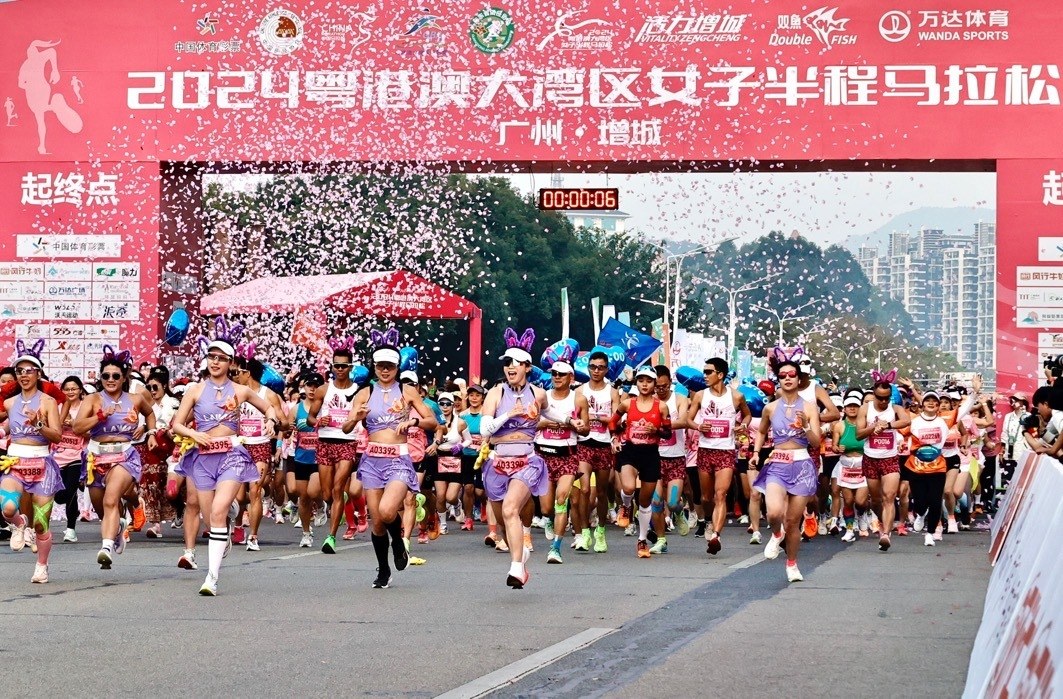 2024年1月1日上午8时,粤港澳大湾区女子半程马拉松赛在广州增城开跑。