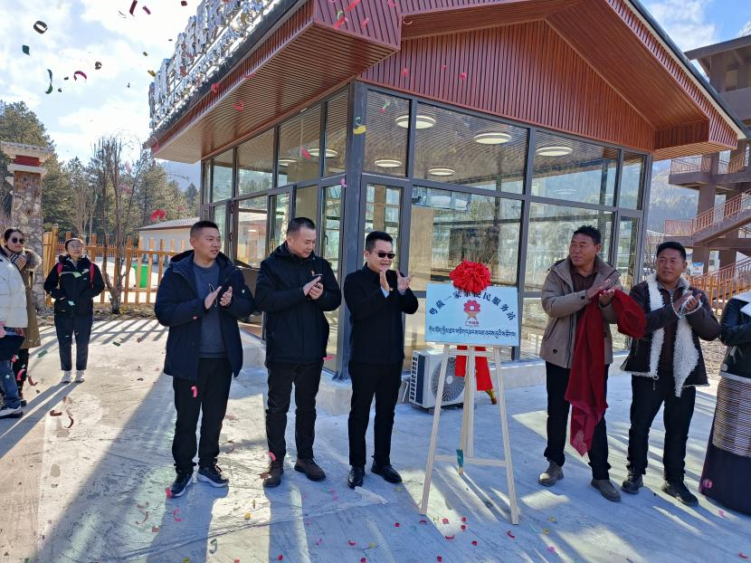广州援藏工作组首先参加了康木村“粤藏一家亲”便民服务站的揭牌启动仪式,并参观站内部配套服务设施。该服务站是广州援藏工作组的援藏资金支持下,通过波密县团委、康木村两委班子、驻村工作队共商共议共建共享的工作机制,将依托康木村的乡村振兴示范村项目和旅游资源优势,搭建村级旅游便民服务平台,可为过往游客提供休息、饮水、手机充电、失物招领、文明宣传、交通指引、旅游地图、助残服务等多项便民服务,同时面向周边农牧群众免费开放,助力当地乡村振兴。