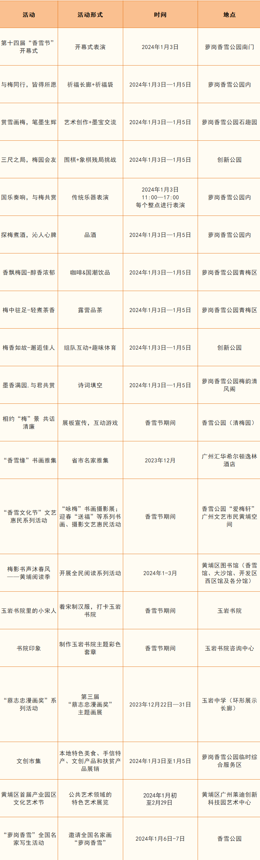 十里梅花浑似雪,又是一年赏梅时。广州黄埔区的年度花开盛事——第十四届萝岗香雪文化旅游节(以下简称“香雪节”)将于2024年1月3日至5日举办,为期3天。